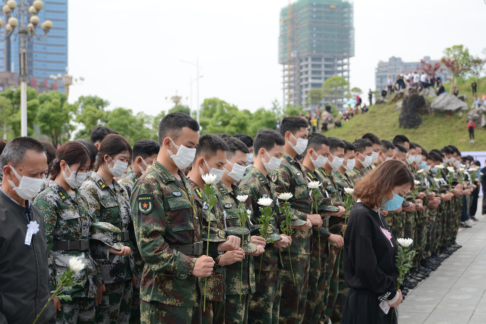 10时,活动正式开始,全体人员神情凝重,双手垂立,低头默哀。