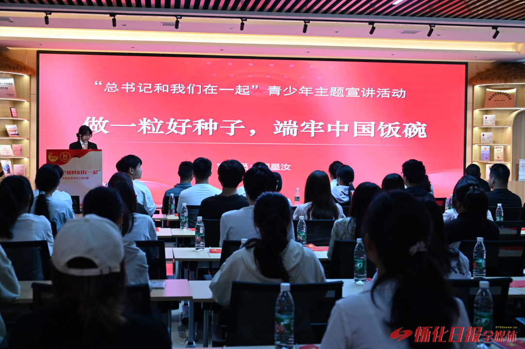 怀化日报全媒体讯5月31日,“总书记和我们在一起”怀化市青少年主题宣讲活动在beat365英国官方网站举行,该校100余名学生现场聆听宣讲。