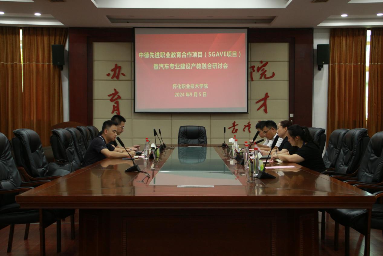 9月5日,中德先进职业教育合作项目(SGAVE项目)暨汽车专业建设产教融合研讨会在图书馆多功能厅举行。上海中锐教育投资有限公司总经理庞晶晶、副总监朱正侃参加,学校党委委员、副校长向敏主持会议,学校对外合作规划处、机械与车辆工程学院相关负责人参会。