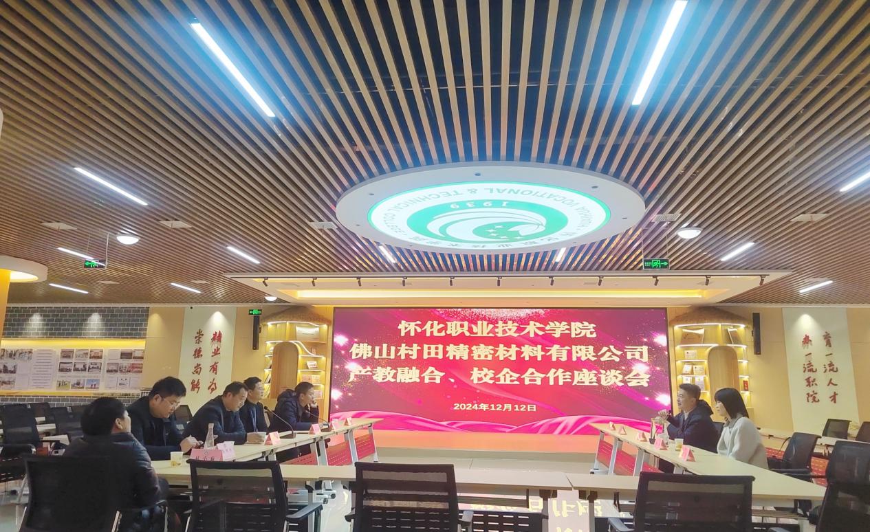 捐赠仪式后,开展了校友分享会和产教融合座谈会。校友分享会上,2021届电子电气学院毕业生彭阡以《我的成长与蜕变之旅》为主题,向学弟学妹们介绍了自己在佛山村田精密材料有限公司的实习工作经历,并与同学们展开互动交流。座谈会上,双方围绕校企实习实训基地建设、人才培养、订单班开设等方面进行了深入交流。