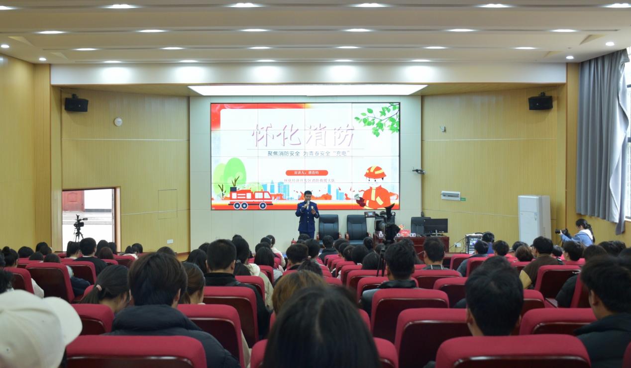 2月28日下午,怀化经济开发区消防救援大队来校开展消防安全知识培训。学校党委委员、宣传统战部部长刘鑫出席,后勤保卫处、学生工作处及各二级学院相关人员,学生代表、物业工作人员、食堂工作人员等100余人参加培训。
