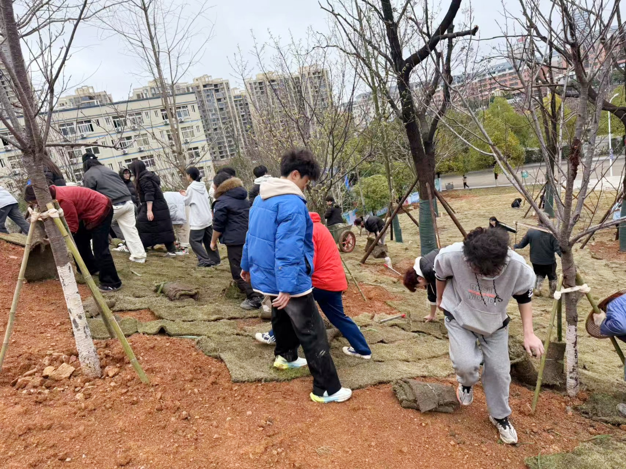 春风一拂千山绿。近日,学校园林工程技术专业的学生们变身“校园美容师”,拿起专业工具,在校园绿化带开展草坪铺设,这既是他们的实训操作课,也是他们扮靓校园的“美化行动”。
