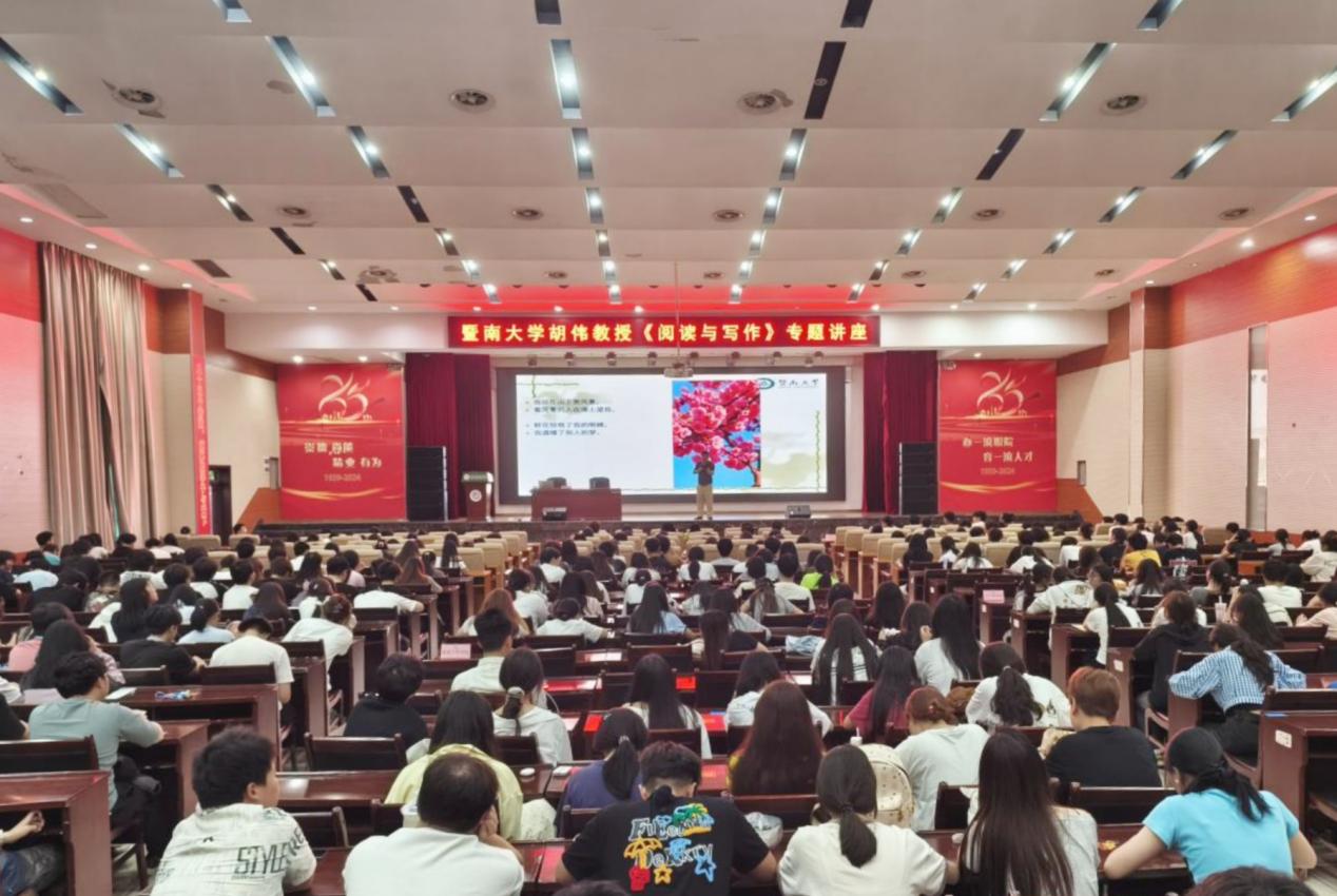 5月29日晚,学校大会议室座无虚席。暨南大学教授、复旦大学博士后、广东省写作学会会长胡伟莅临beat365,以《阅读与写作改变人生》为题,为师生们呈现了一场关于阅读与写作的精彩讲座。基础课部负责人、人文教研室教师及学校师生代表参加。