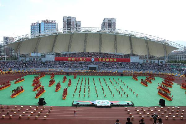 9月26日上午,我院组织5000余名学子参加了怀化市第五届运动会开幕式,由920名怀职学子参演的开幕式节目《奋进》受到了与会领导的高度评价和现场观众的热烈欢迎。
