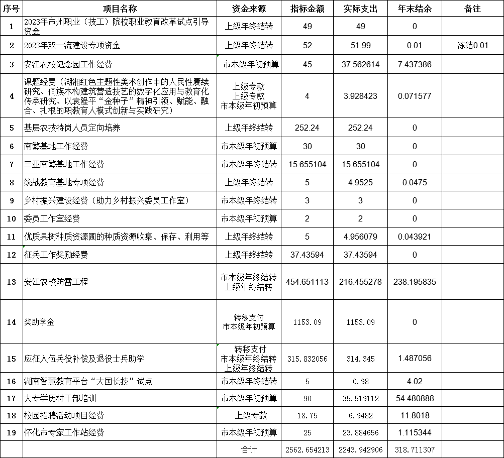 (1)2023年市州职业(技工)院校职业教育试点改革资金引导资金49万元,实际支出49万元,执行率100%。主要用于二级学院教学管理、教学运转及专业群建设开支等。