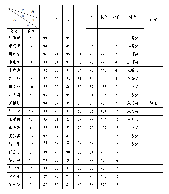 “讲文物故事 知家乡历史”解说词撰写评分评奖汇总表