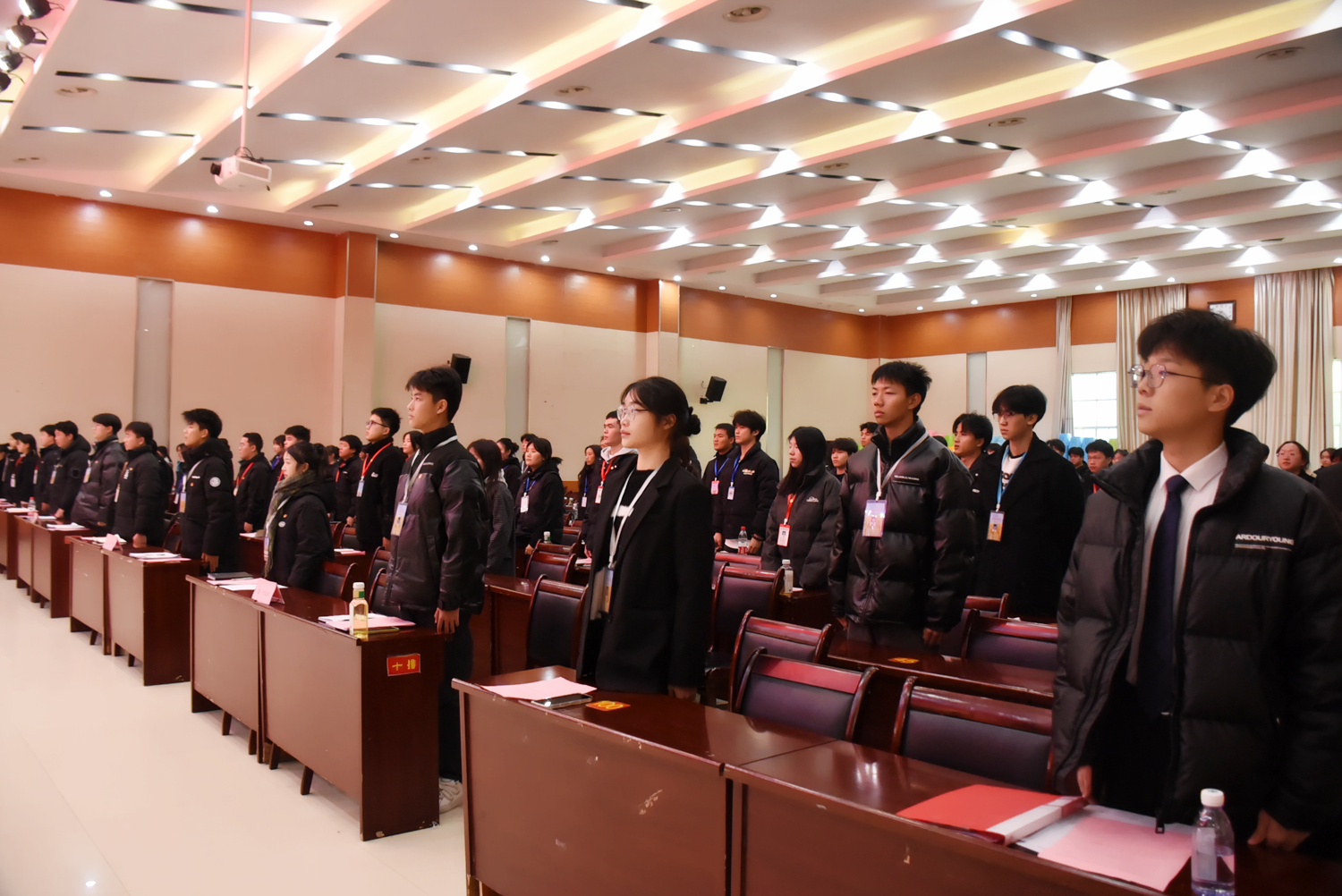 大会向全校学生发出倡议:号召全体学生团结一致、锐意创新、踔厉奋发,在新的一年谱写出新的华章,用拼搏奋斗和热血担当谱写新时代的青春之歌。