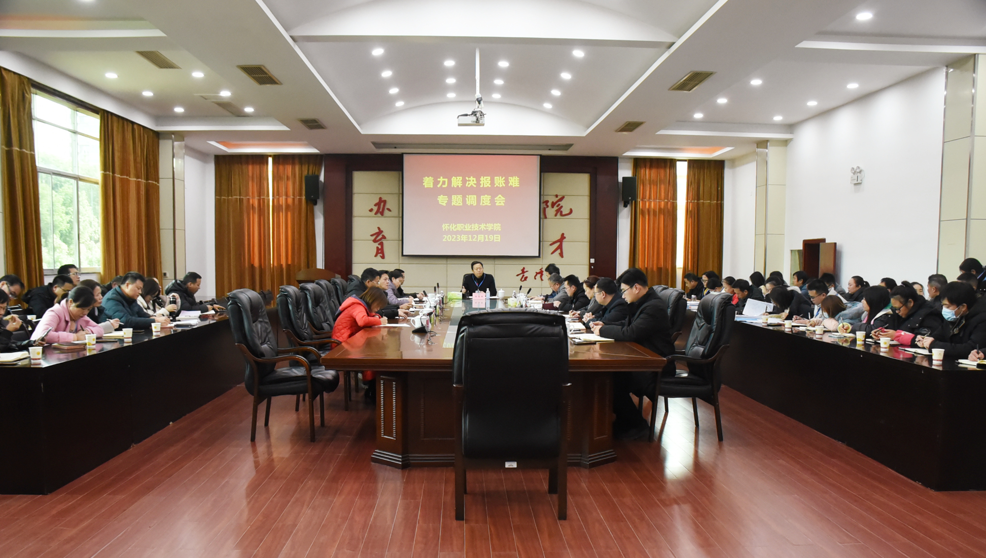 近日,学校在图书馆多功能厅召开着力解决报账难专题调度会议,党委书记胡扬帆主持。校领导刘学文、张云龙、罗向东、廖冬云、罗文忠、周碧波、向敏、肖宪龙、钟峰、李亚玲、刘鑫参加。相关职能部门、各二级学院负责人参加会议。
