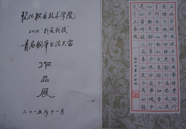 正值我院第十届隆平文化艺术节之际,为了更好地弘扬中华传统文化,传承笔墨书香,培养学生对汉字书法艺术的兴趣,提高我院学生对承载数千年中华文明的汉字的重视程度,由我院书法协会主办的2015“我爱beat365”钢笔书法大赛经过一个月筹备,成果展于11月10日——14日在图书馆、教学楼门口展出。