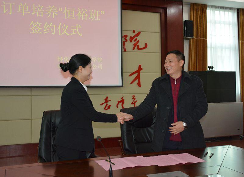 11月26日 的一场签字仪式促使学院订单式教育迈上了发展的新台阶。上午9:00,我院与怀化恒裕汽贸有限公司校企合作订单培养“恒裕班”签约仪式在院多功能厅举行。学院院长王聪田、副院长张圣喜,怀化恒裕汽贸有限公司总经理瞿伶伶出席了签字仪式。恒裕汽贸公司与我院机械与汽车工程系负责同志及恒裕班学员参加了签字仪式。签字仪式由张圣喜副院长主持。