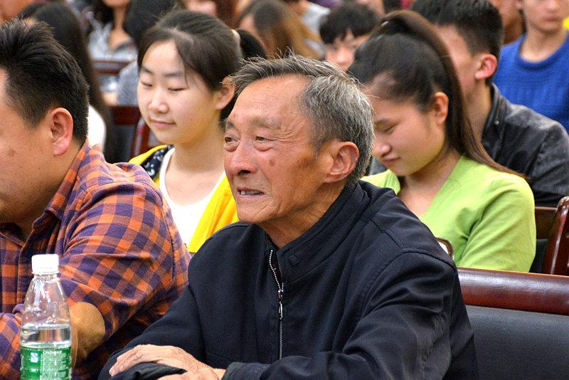 恩师周武彩带着欣慰的目光看着学生精彩演讲