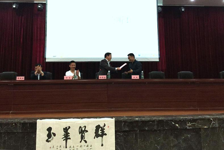 最后学院聘请二位校友为大学生创业指导师,并为其颁发聘书。