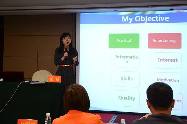 杨芳教授针对英语的重要性、英语竞赛的开展情况、英语教学面临的挑战及英语改革创新、创业教育的实施做了重要讲话。黎加厚教授对现代教育——“互联网+教育”做了具体讲解。他从二维码、APP、微课的教学制作、操作做了生动的说明,并和在会人员进行互动,向大家展示互联网教育的快捷、简便。广东交通职业技术学院教师杨璇等专家就会议主题做了发言。