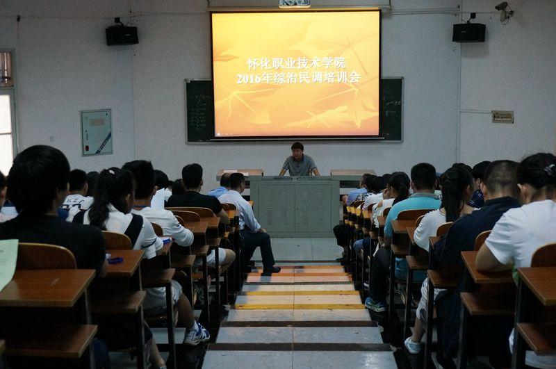 2016年怀化市综治民调工作已经正式开始,为确保我院师生反馈数据的真实准确性,55日、6日上午,我院与鹤城区河西街道办事处联合召开了2016综合治理民调工作培训会,分别针对教职工和学生传达了综治民调工作的内容、目的和意义,希望我院全体师生能够积极支持配合此次的综治民调工作。