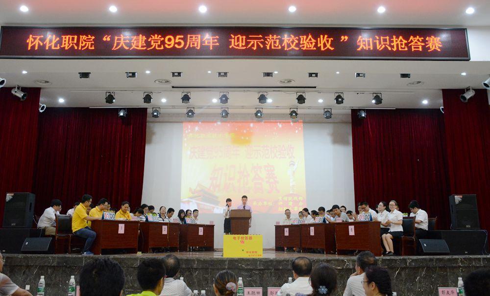 此次知识抢答赛以党支部为单位,共12支参赛队伍,分别代表了12个党支部。参赛队员中有支委、普通党员和一般干部,分别代表不同人员层次,覆盖面广,契合了竞赛主题。竞赛内容包含了党员教育活动热点和学院当前中心工作,主要选自习近平总书记系列讲话、《中国共产党章程》、《中国共产党纪律处分条例》、中国共产党党史以及我院省级示范校创建验收工作相关知识。组委会专门设立了仲裁组,对答题规范、时间要求等进行客观监督和现场评判,保证了活动的严肃性、公正性、教育性。
