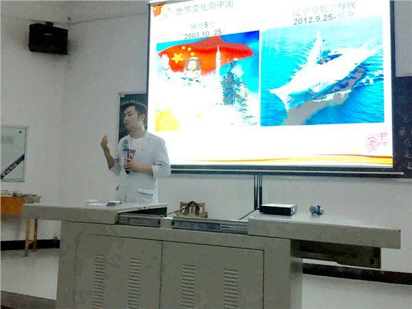 “青春不是年华,而是心境;青春不是桃面、丹唇、柔膝,而是深沉的意志、恢弘的想象、炽热的感情。”陈超书记用一首诗歌《青春》将在座的学子带入主题,围绕世界变化与中国、社会主义核心价值观的内涵与意义、当代青年如何践行社会主义核心价值观这三大点来引导青年学生。他通过当下社会关注、青年关心的热门话题,引发学生思考,鼓励学生奋斗,告诉青年学生们:我们的背景,是这个时代。这个并不嫌贫爱富的时代,这个规则正在取代关系的时代,这个教育与知识俯拾皆是的时代,这个普通人的黄金时代。
