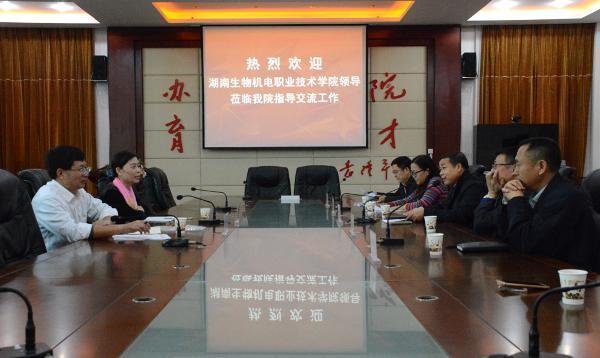 交流工作座谈会在多媒体会议厅召开。党委副书记邬国盛首先对付爱斌副院长一行的到来表示热烈欢迎,并向其介绍了我院办学情况,他讲到,我院在困难中前进,并发挥自己优势特色专业,把学院越办越好。付爱斌副院长对我院的发展现状及前景给予高度评价,并简要介绍了湖南生物机电职业技术学院近期工作的开展情况,以及未来发展方向。随后,双方就特色专业的发展进行了深入交流。
