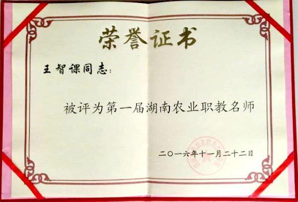 为大力表彰长期坚守在农业职业教学一线,并在教学、科研和人才培养方面做出突出贡献的优秀教师,充分发挥教学名师的引领、示范和辐射作用,湖南现代农业职业教育集团理事会面向全省农业职业院校开展了“湖南现代农业职业教育集团第一届农业职教名师”评选活动。经过层层选拔,我院动物科技系胡辉教授、科研产业处处长王智课副教授荣获湖南农业职教名师称号。