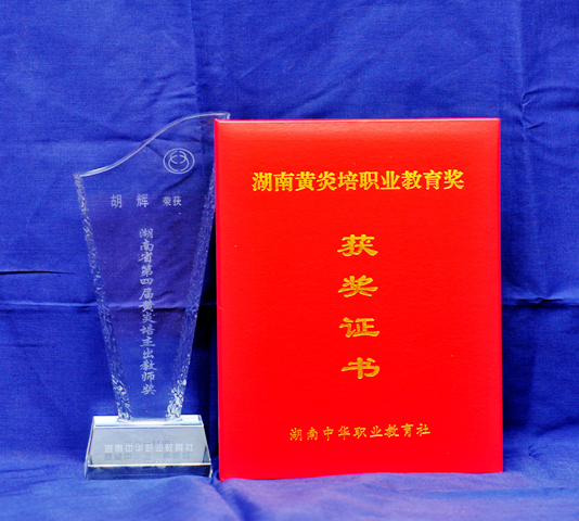 同时,胡辉教授还荣获湖南省第四届黄炎培职业教育奖杰出教师奖。本届黄炎培职业教育奖11月17日在湖南大众传媒职业技术学院举行,共表彰 “黄炎培优秀学校奖”10所、“黄炎培杰出校长奖”8名、“黄炎培杰出教师奖”30名、“黄炎培优秀理论研究奖”14名。