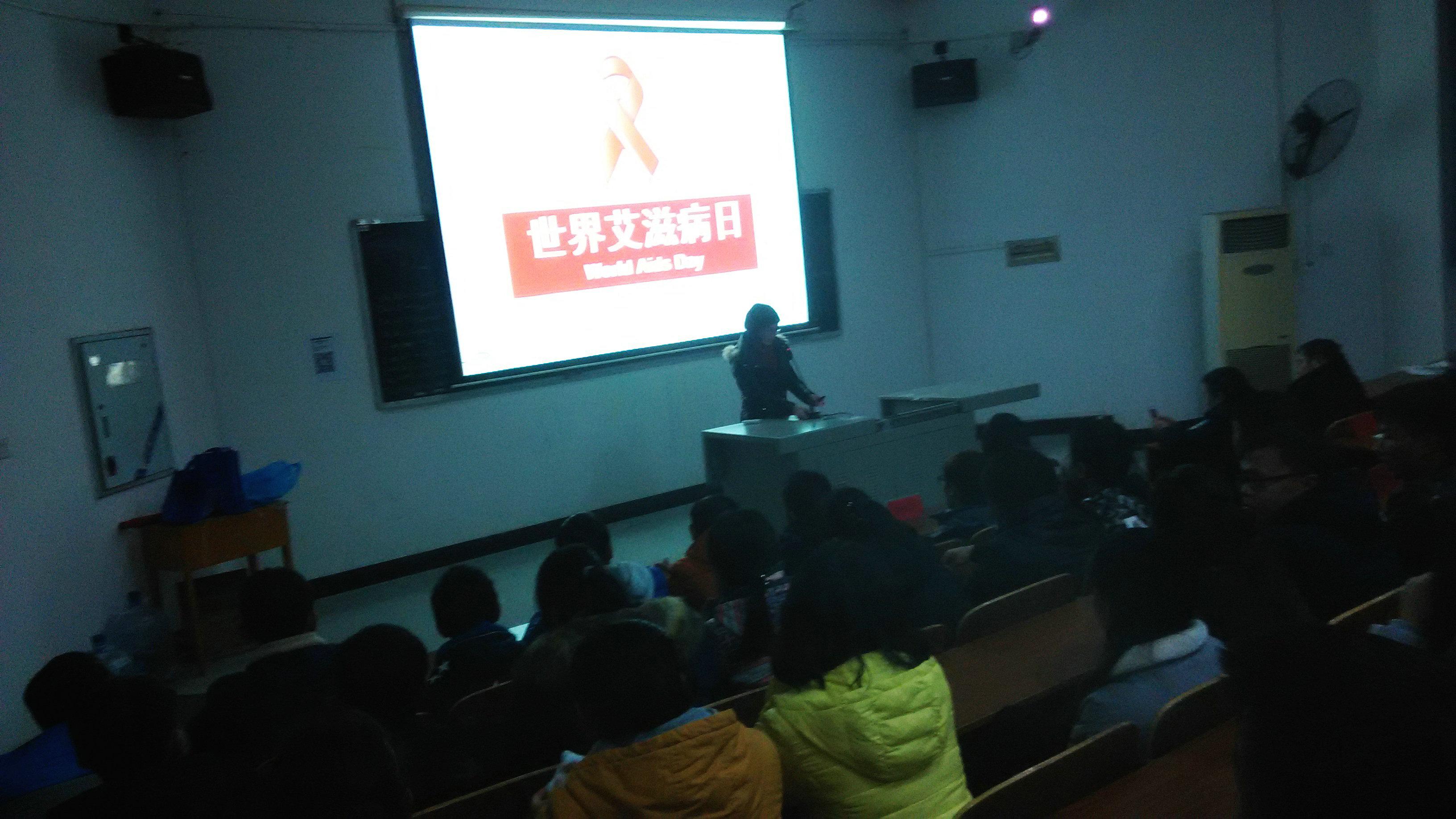 刘教授向学生详细介绍了艾滋病的传播途径、感染艾滋病的表现、艾滋病人的悲惨现状及预防艾滋病的措施。随后,为大家播放了关于预防艾滋病的微电影,她希望大家做一个先行者,并带动家人朋友共同为艾滋病毒携带者营造一个良好的治疗环境。不断从现实出发让每一个人学会去正确面对艾滋病,学会去关心每一名艾滋病患者,达到预防艾滋病直至整个社会杜绝艾滋病的目的。河西社区卫生服务中心工作人员,在现场向每位参会人员发放了宣传资料。
