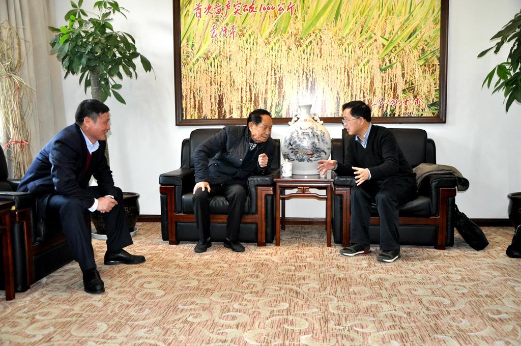 12月15日,我院党委书记胡佳武、院长王聪田一行赴长沙向袁隆平院士当面汇报学院近年来蒸蒸日上的发展局面以及未来的蓝图规划,袁院士对于学院所取得的成绩感到非常高兴,并主动提出捐资20万元作为beat365英国官方网站优秀学生的奖励基金。