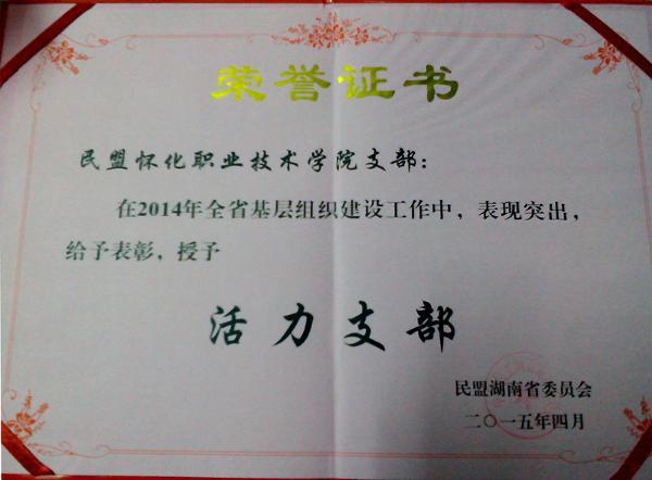 民盟怀化职院支部于2013年底成立,现有盟员10位。该支部在民盟怀化市委和学院党委的科学领导下,积极参加职业教育精准扶贫调研及实践活动,积极参加各级统战理论调研活动,谢海琼老师设计的统战理论课题获2016年度民盟湖南省委统战理论调研成果三等奖,2015年4月支部也曾被民盟湖南省委评为2014年度活力支部。