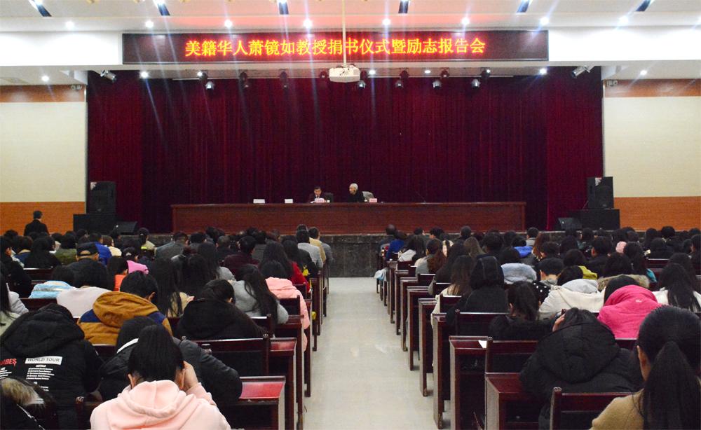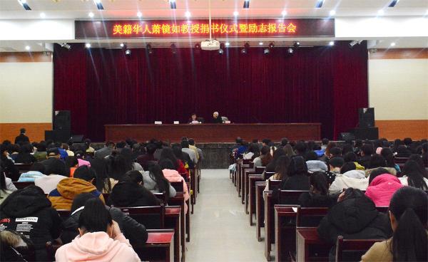 3月21日,美籍华人、著名经济学博士萧镜如冒着丝丝小雨来到beat365英国官方网站,在怀化职院举行了《飞翔的心》赠书仪式及励志报告会。学院党委书记胡佳武、院长王聪田进行了热情迎接,并出席报告会,报告会由学院党委副书记邬国盛主持,近四百名教师学生代表参加。