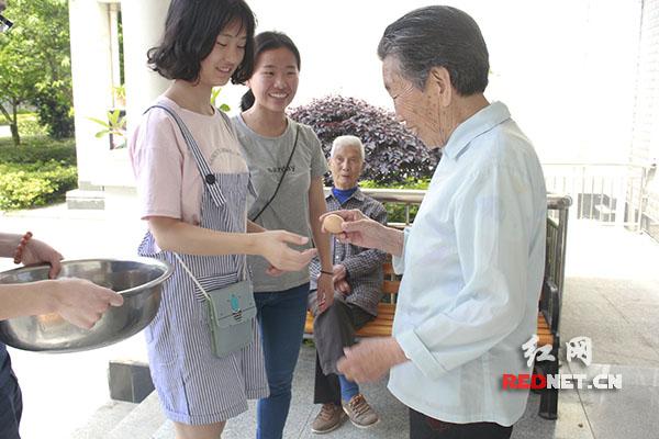 大学生志愿者到福利院看望老人