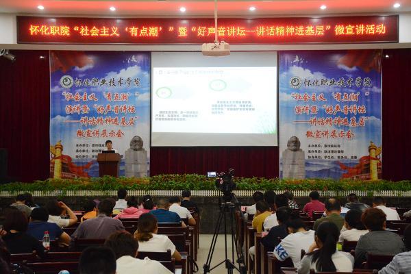 为积极推动我院师生不断深入学习领会习近平总书记系列重要讲话精神,加强学生的思想政治教育,6月16日下午,“社会主义‘有点潮’”演讲暨“好声音讲坛讲话精神进基层”微宣讲展示会在大会议室隆重举行,党委书记胡佳武、院长王聪田等领导出席了本次活动。