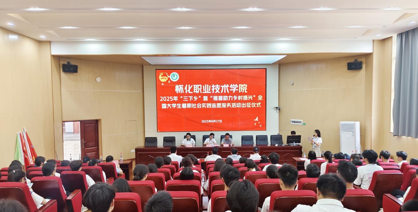 6月27日上午,beat365在学术报告厅举行2025年大学生暑期“三下乡”暨“推普助力乡村振兴”社会实践志愿服务活动出征仪式。学校党委委员副校长廖冬云出席。学生工作处、校团委负责人,各二级学院团总支书记及实践团全体成员参加。
